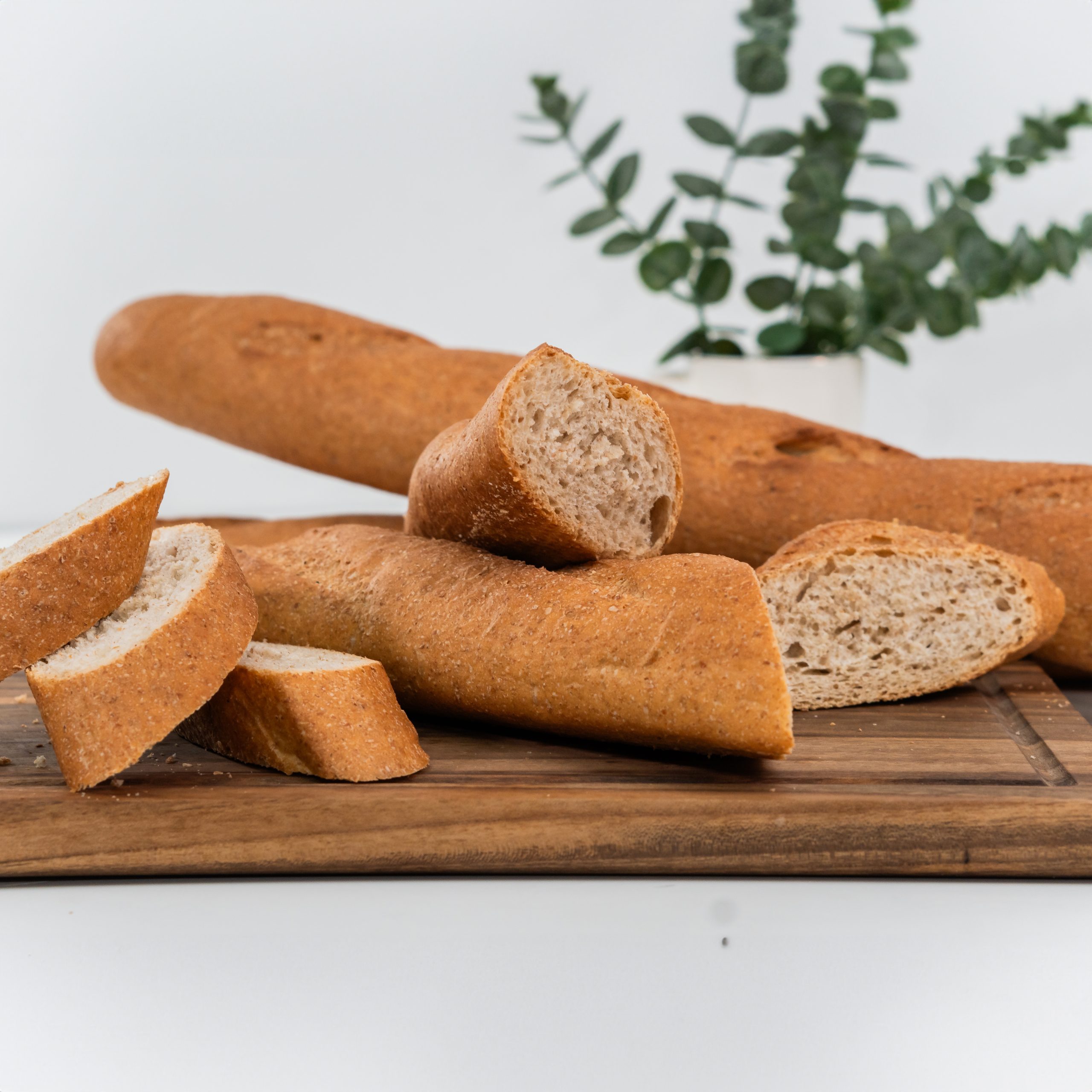 Pan integral de forma alargada, corteza crujitente y miga suave, 58 x 5 x 5.7 cm